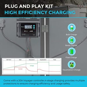 【Exceptional effectivity】Renogy solar panels utilizing grade A+ monocrystalline solar cells. Superior sensible PWM expertise charge controllers guarantee charging effectivity and security.