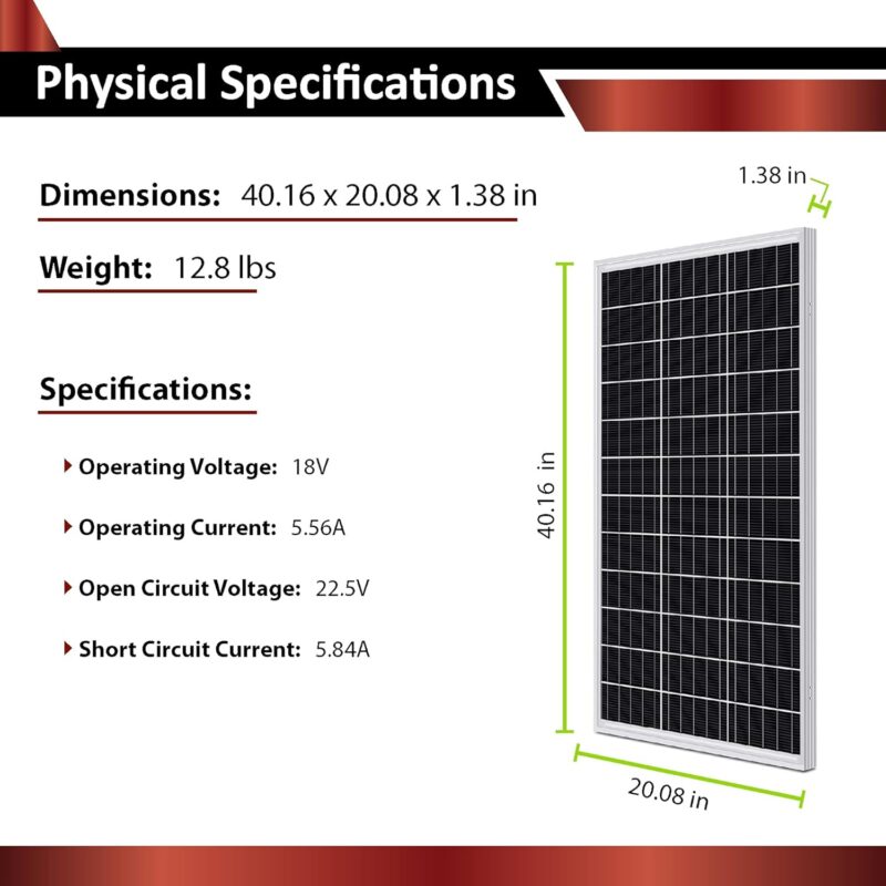 Solar Panel Wattage 200W (2 x 100W Monocrystalline Panels)