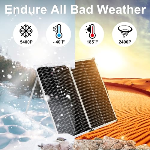 【WITH ADJUSTABLE BRACKET】–You might alter the angle of the solar panel at will to receive a better output energy.The solar panel has one of the best charging effectivity at a 90-degree angle to the daylight.