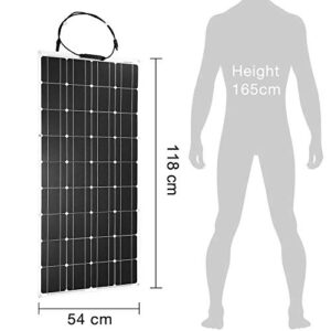 【Premium High quality】100W Monocrystalline Cell (*12*) Panel, 21% Excessive effectivity of charge the Vitality storage tools. Stand up to excessive wind (2400Pa) and snow masses (5400Pa), the floor is made up of three.2mm low Iron glass, the monocrystalline modules are framed by 35mm width aluminum alloy, which is 2~5mm wider than the others’.