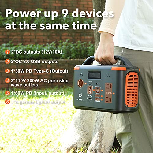 GOLABS 200W moveable energy station has versatile output ports similar to 2*110V/200W AC shops (pure sine wave), 2*DC output port (12V/10A), 1*60W PD (Enter/ output), 1*30W PD Kind-C (output), 2*fast charge USB port, 1*cigarette lighter output (12V/10A). It expenses many delicate digital units with out harm similar to laptop computer smartphone digital camera kindle and so on.