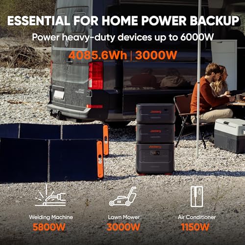 Leaping Performance: With 4085.6Wh gigantic capacity, Jackery Solar Generator Kit 4000 is capable of powering heavy load devices up to 3000W, satisfying all the power needs of outdoor exploration or home use. It whispers QUIET AT ONLY 30dB in operation, leaving you complete peace of mind.